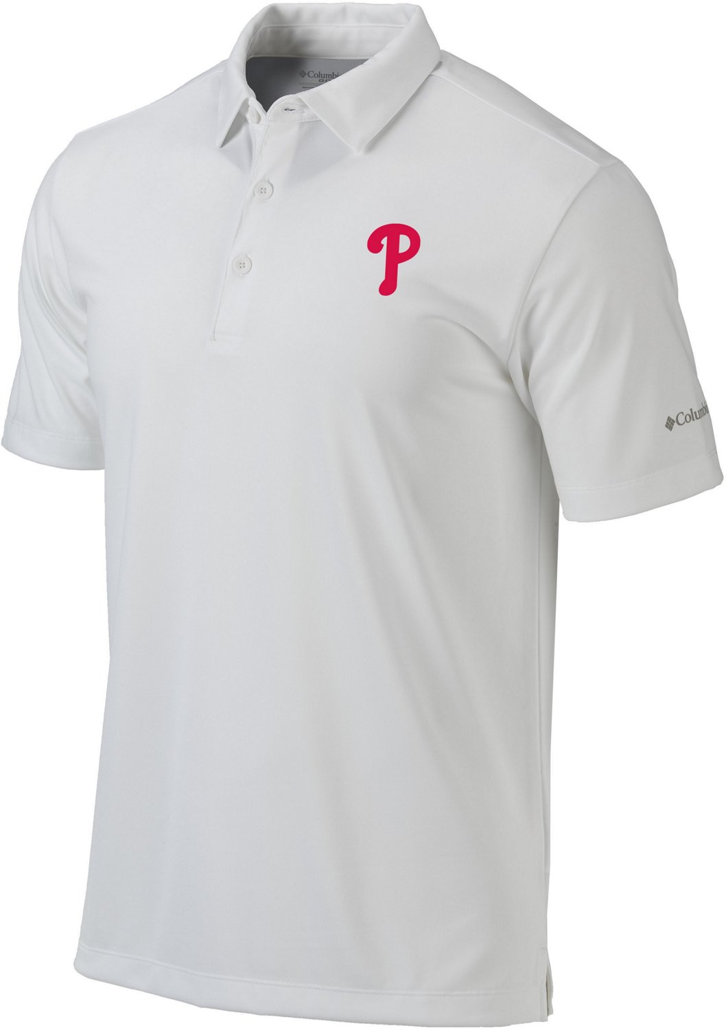 Enjoy the next Phillies game in the Columbia Sportswear Men's Philadelphia Phillies Omni-Wick Drive Polo Shirt. This polo shirt is made from 100% polyester that resists wear and tear, and has Omni-WICK™ technology that gets rid of moisture to keep you cool and dry. The Omni-SHADE technology blocks your skin from harmful sun rays, and the team design expresses your fandom.
