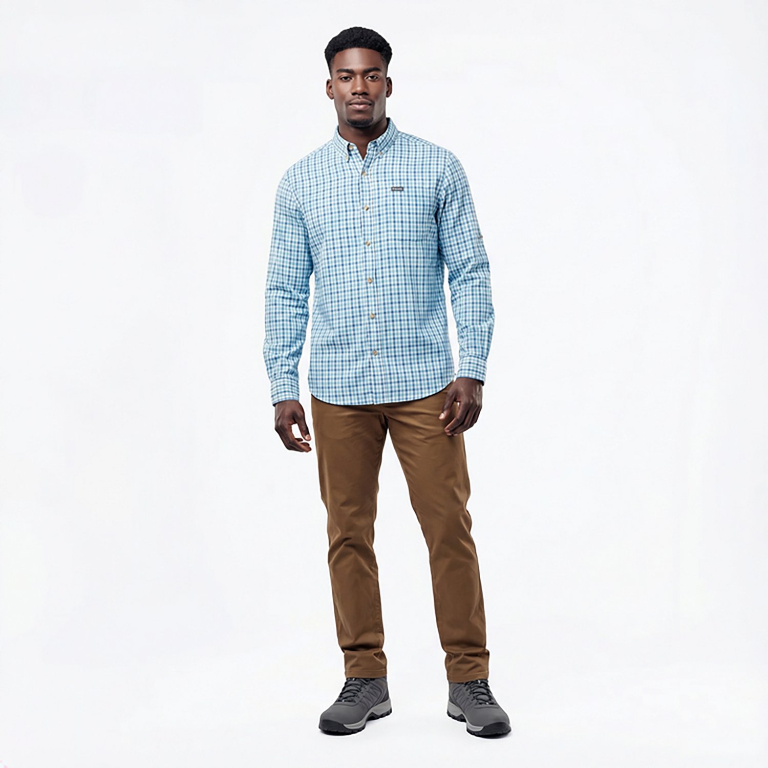 More and more, hiking outfits and casual attire are blending together. Look great in the Columbia Sportswear Men's Rapid Rivers II Long Sleeve Shirt. The gingham pattern and button-up design make this shirt one that transitions easily from a daytime hike to a night out with friends. It has a pocket on the left chest and is made from comfortable yarn-dyed cotton.