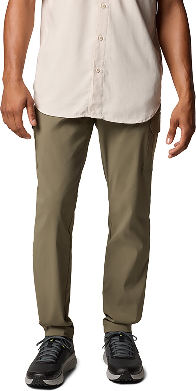 Enjoy your hike in the Columbia Sportswear Men's Tech Trail Utility Pants. They are made of 95% polyester and 5% elastane. The Omni-Shield™ repels moisture and resists stains by preventing liquids from absorbing into fast-drying yarns, so you stay clean and dry in damp, messy conditions, and their zippered security pocket and back and cargo pockets with hook-and-loop closures offer secure storage. The drainage holes on back pockets for adventures near water.