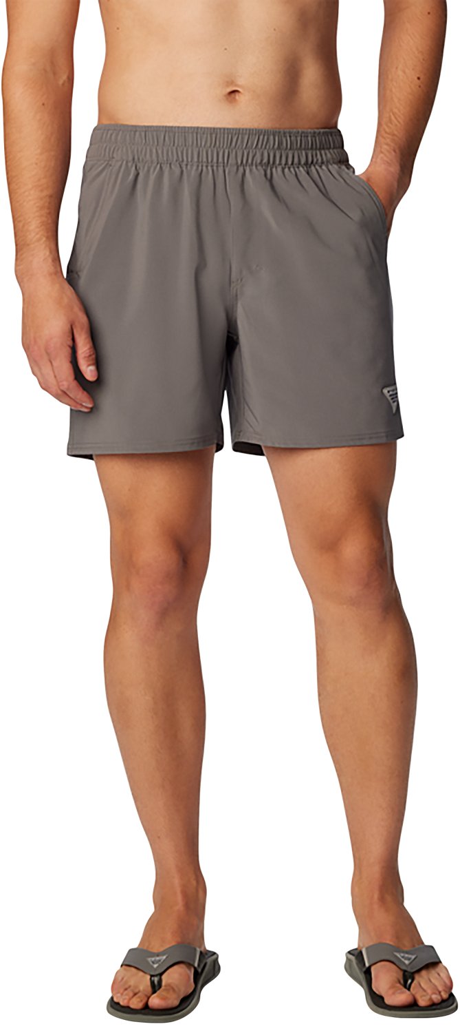 Move freely on and off the boat with the Columbia Sportswear Men's Terminal Roamer Stretch Shorts 6 in. The polyester and elastane material provides a comfortable feel, while the Omni-Shield technology repels moisture and resists stains to keep you dry. Omni-Shade Broad Spectrum UPF 50 sun protection shields against UVA/UVB rays, and the elastic waist and drawstring combo offers a custom fit.