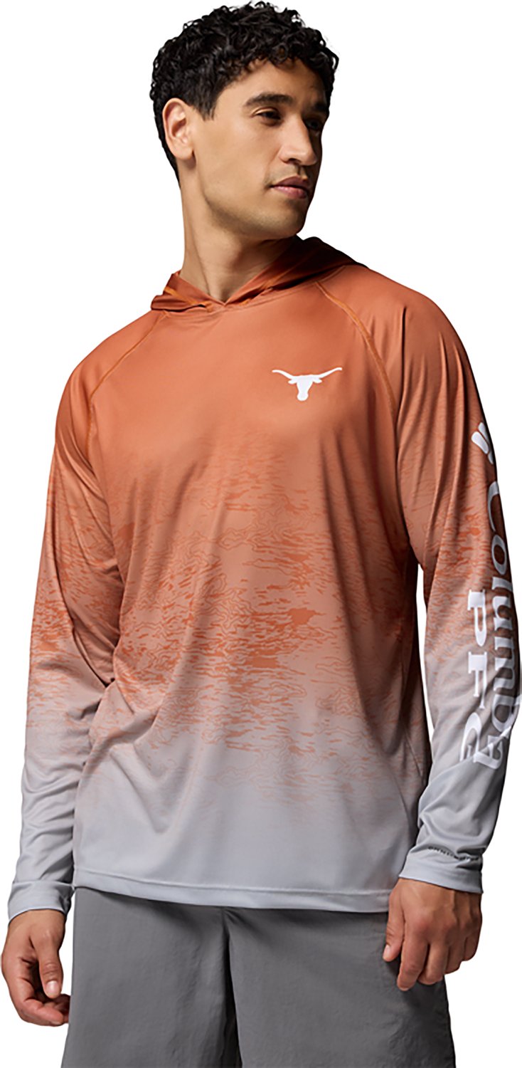 Root for your favorite team when you wear the Columbia Sportswear Men's Texas Longhorns Collegiate PFG Super Terminal Tackle™ Hoodie. It id made of 100% polyester interlock. The Omni-Shade™ UPF 50+ provides sun protection, and its Omni-Wick™ wicks away sweat to keep you dry. The quick dry fabric ensures a comfortable wear.