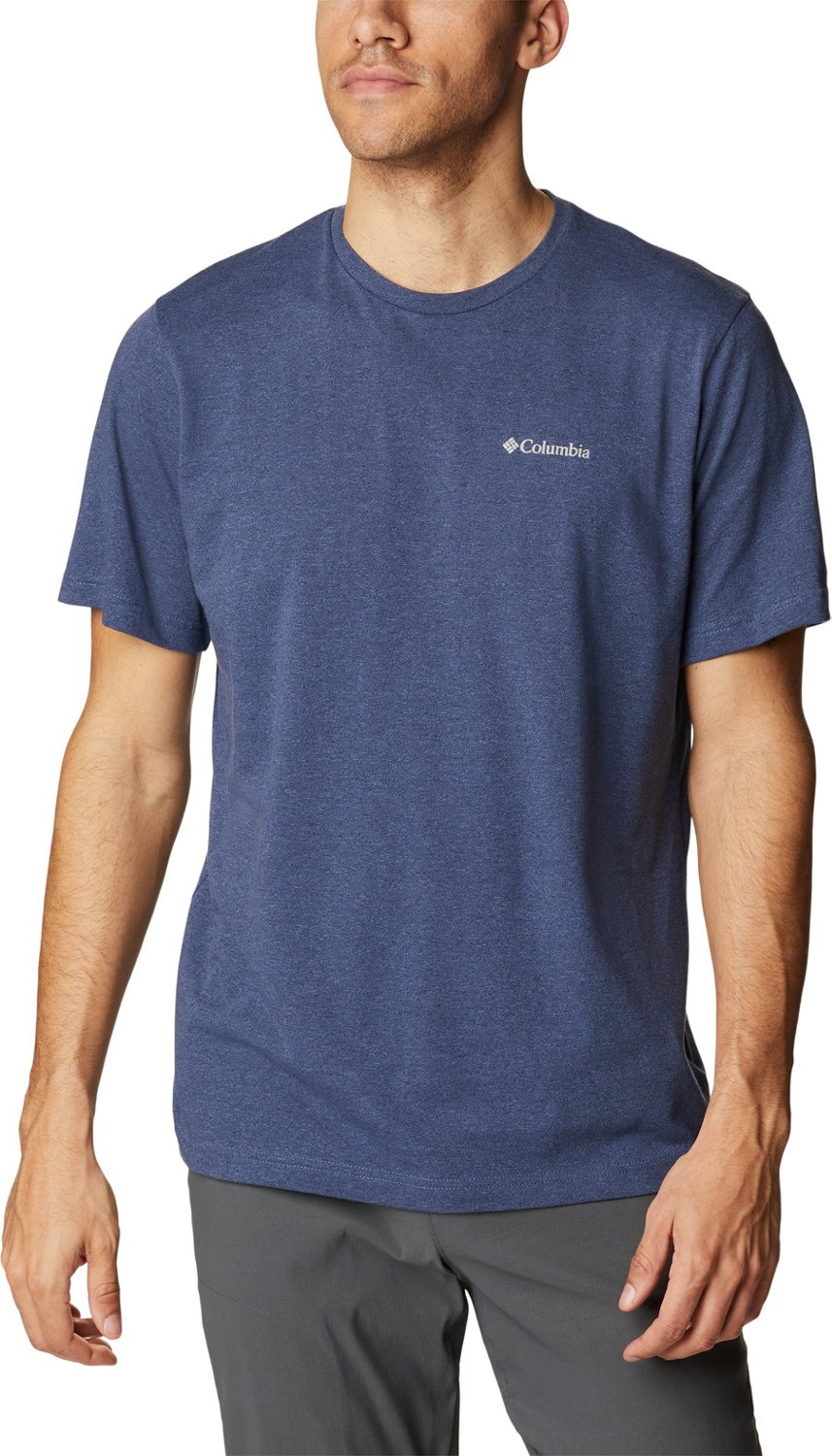 Stay focused day in and day out with the Columbia Sportswear Men's Thistletown Hills Graphic T-shirt. The cotton and polyester material provides a comfortable feel, while the Omni-WICK technology helps keep you cool and dry. The screen-printed design on the lest chest delivers a stylish look.