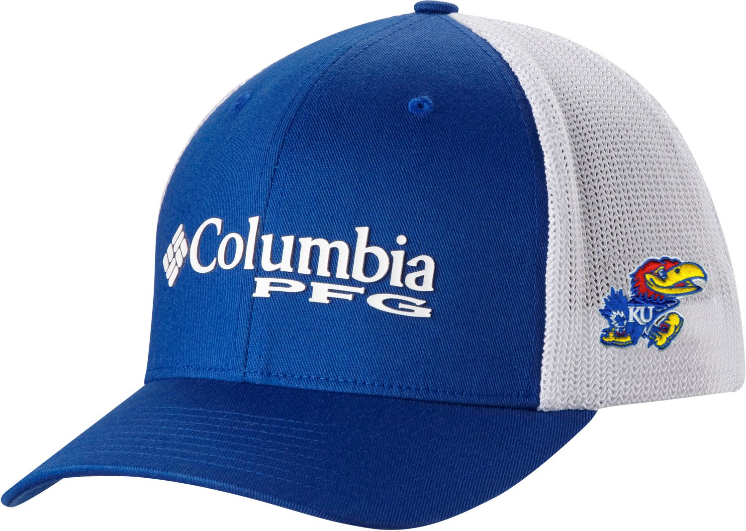 Let loose on game day with the Columbia Sportswear Men's University of Kansas PFG Snapback Cap. The cotton and spandex material provides a comfortable feel, while the plastic snapback closure offers a custom fit. The team logo shows off your Jayhawks pride.