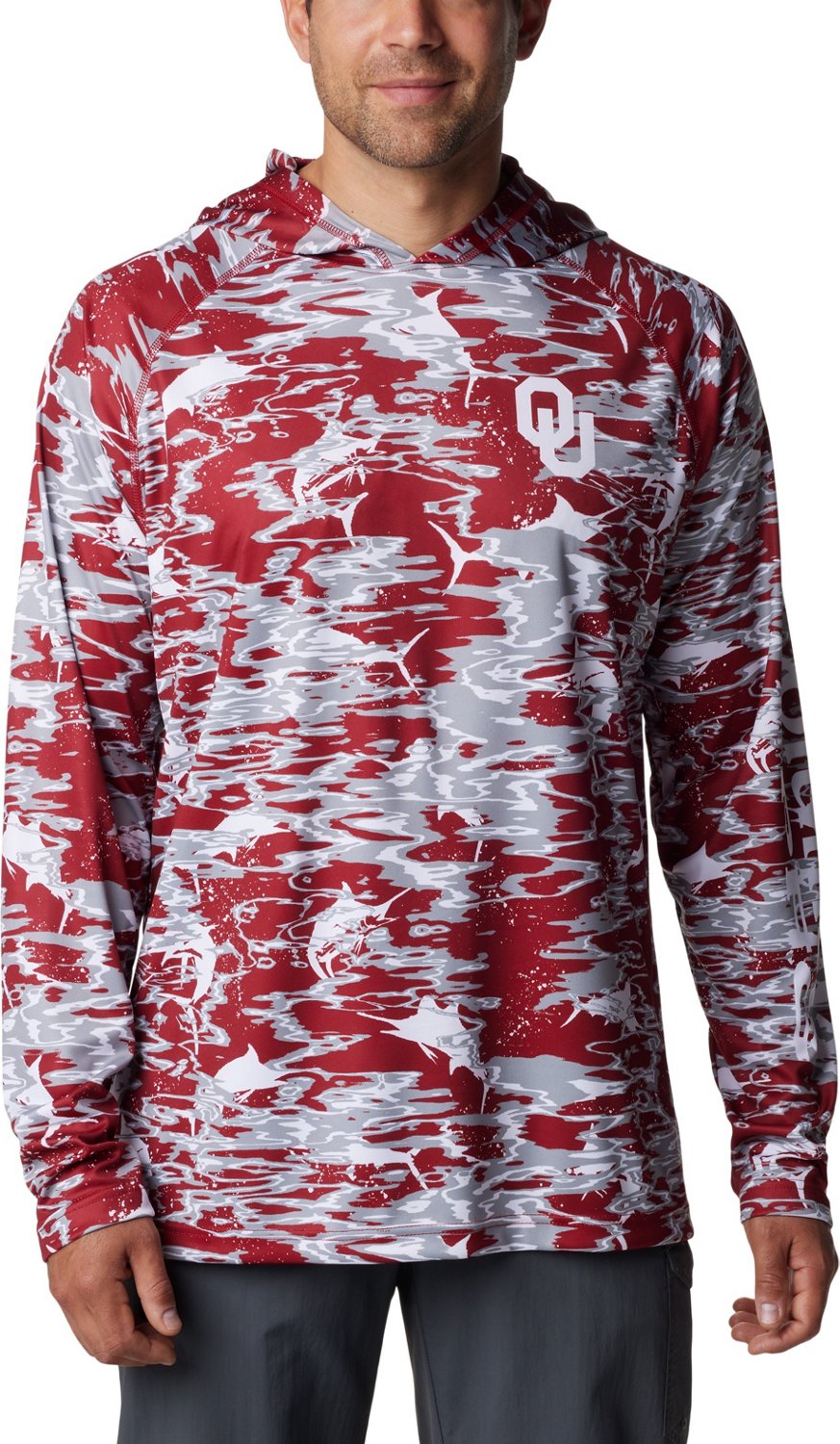 Grab your fishing gear and go with the Columbia Sportswear Men's University of Oklahoma Rippled Super Terminal Tackle Hoodie. The polyester interlock fabric provides a comfortable feel, while the Omni-Wick technology helps keep you cool and dry. The Omni-Shade UPF 50 sun protection shields against harmful UV rays, and the team logo displays your Sooners pride.