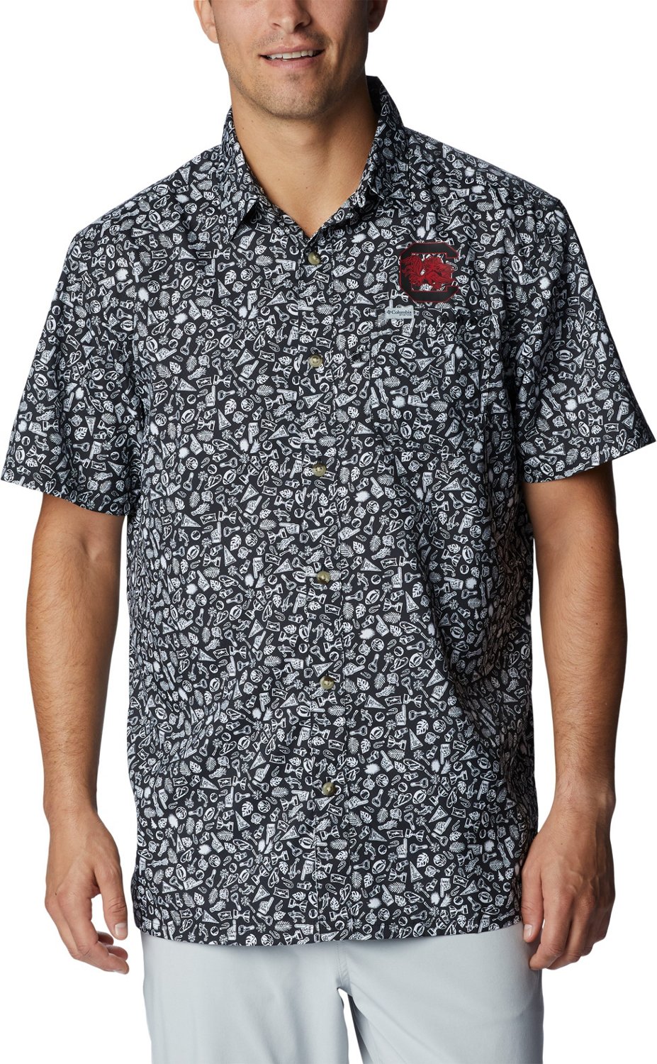Columbia Sportswear Men's University of South Carolina Super Slack Tide Gameday Print Button Down Shirt