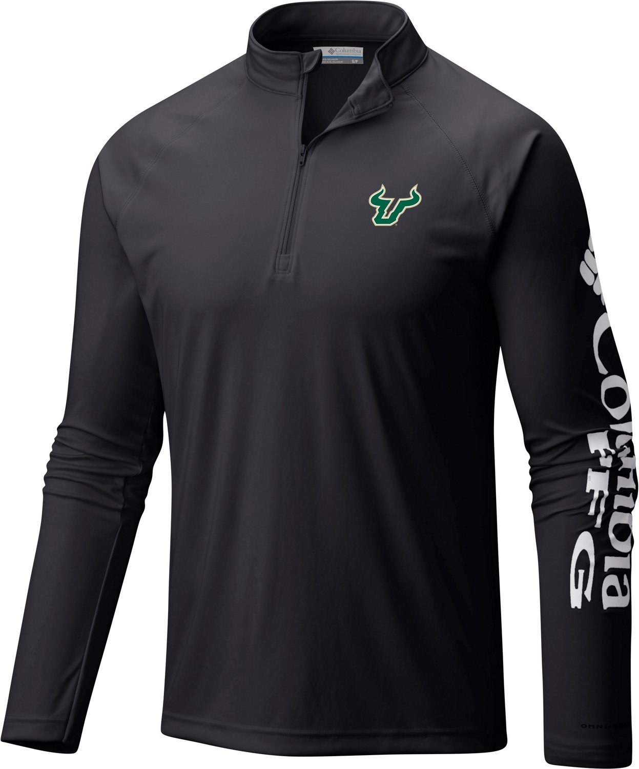 Sport the Columbia Sportswear Men's University of South Florida Terminal Tackle 1/4 Zip Sweatshirt to show off your Bulls pride. Made of 100% polyester interlock for durability, this shirt comes with Omni-WICK technology to wick sweat away and Omni-SHADE UPF 50 sun protection. The shirt also features a Columbia Sportswear graphic on the sleeve for a touch of style.