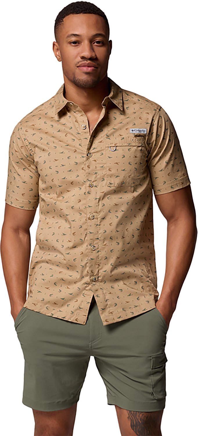 Pull out a fresh look on the boat with the Columbia Sportswear Men's Wild Cast Camp Button Down Shirt. The cotton and elastane material provides a comfortable feel, while the allover print offers a stylish look.
