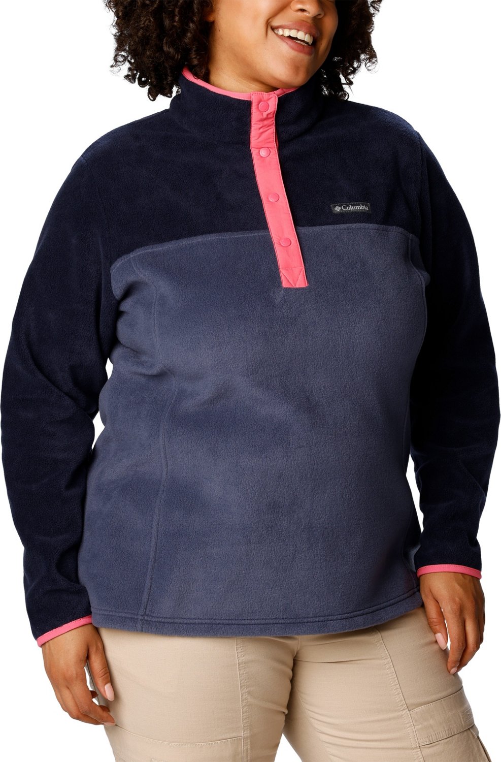 Stay cozy and stylish in the Columbia Sportswear Women's Benton Springsâ„¢ 1/2 Snap Plus Size Pullover. The 100% polyester, fleece material will provide long-lasting comfort, and the Columbia Sportswearâ„¢ logo on the left chest offers a distinct design.