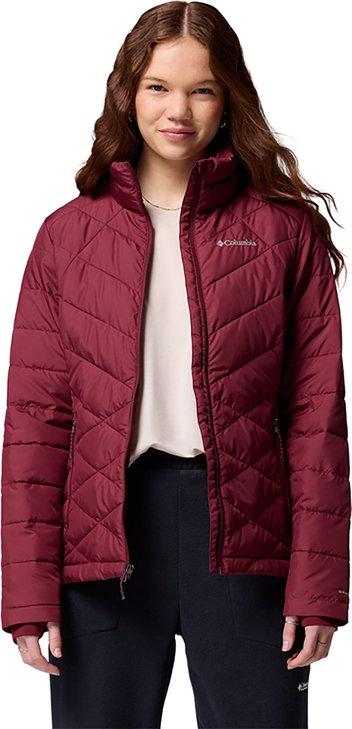 Stay warm when the chill hits in the Columbia Sportswear Women's Heavenly Jacket. Its shell, lining, reflective lining, and insulation are made of 100% polyester. The Omni-Shieldâ„¢ repels moisture and resists stains by preventing liquids from absorbing into fast-drying yarns, so you stay clean and dry in damp, messy conditions, and its Omni-Heatâ„¢ thermal-reflective breathable lining retains warmth using silver dots that reflect body heat, so you stay warm and comfortable as temps drop. The comfort cuffs with thumbholes seal out the elements.