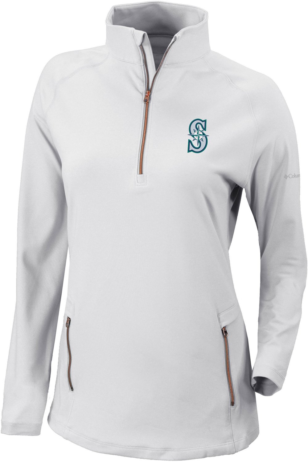 Even when you're out on the golf course, you can represent the Mariners wearing the Columbia Sportswear Women's Seattle Mariners Omni-WICK Outward Nine 1/4-Zip Pullover. The Omni-WICK™ technology gets rid of moisture to keep you cool and dry, while the Omni-SHADE™ technology helps protect your skin from the sun's harmful rays. The polyester and spandex fabric resists wear and tear, and the team design highlights your fandom.
