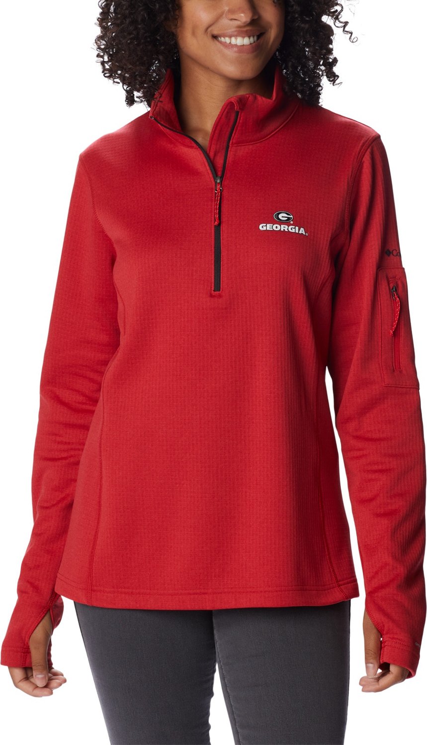 Put on the Columbia Sportswear Women's University of Georgia Park View 1/2 Zip Fleece and enjoy lightweight comfort during the next Bulldogs game. The fleece offers UPF sun protection and wicks moisture to help you handle the elements, and the screen-printed UGA team logo is sure to help you show your allegiance.