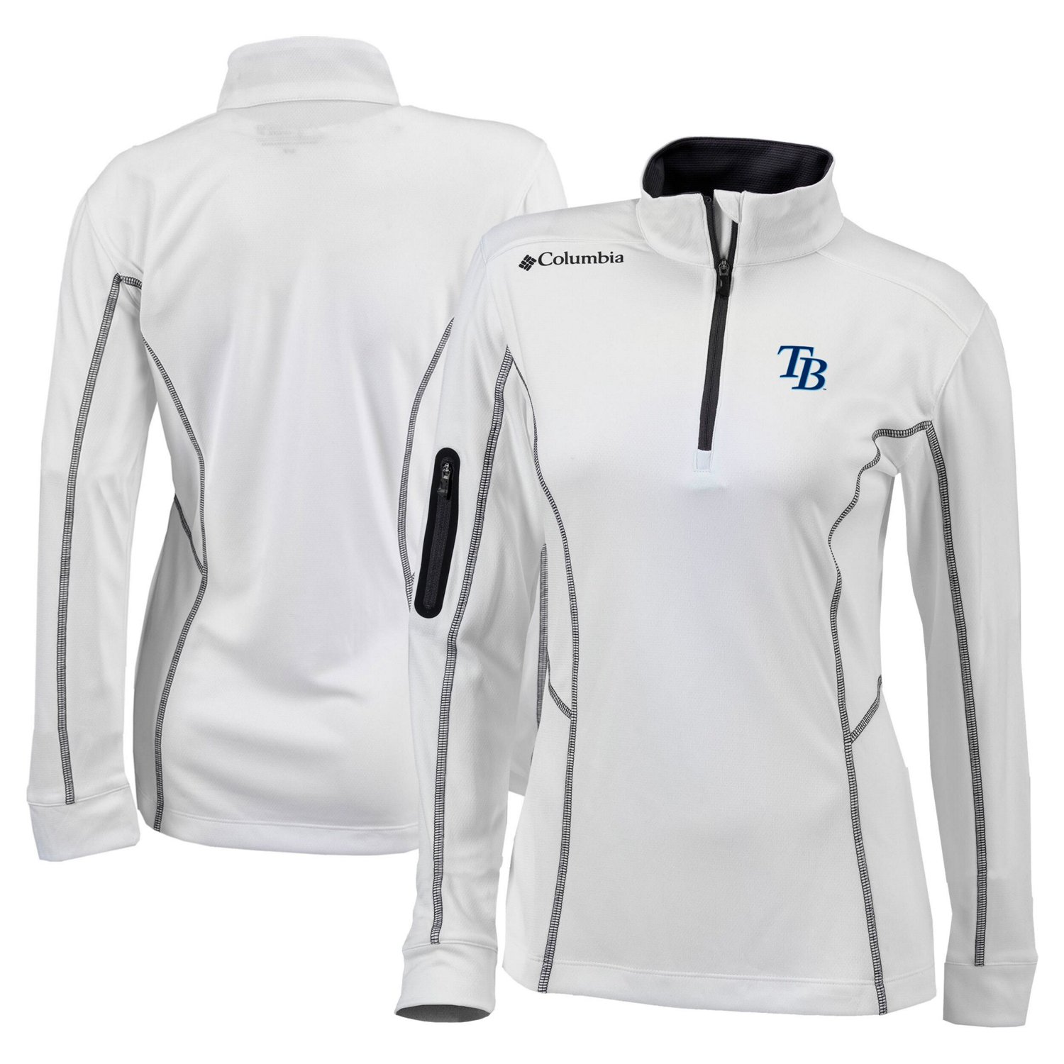 Stay comfortable and show your Tampa Bay Rays spirit with this Columbia Omni-Wick Shotgun Quarter-Zip Pullover Top This lightweight pullover features a mock neck and vertical zippered sleeve pocket perfect for keeping your essentials close The embroidered Tampa Bay Rays graphics and flatlock stitching add a touch of style to this comfortable piece Whether you're at Tropicana Field or watching from home this pullover will keep you comfortable while you cheer on the Tampa Bay Rays