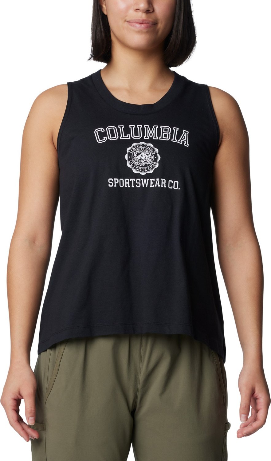 Stay cool and comfortable no matter what you're doing in the Columbia Women's North Cascades Tank T-shirt. This lightweight t-shirt is made of 100% cotton jersey and has a sleeveless design to help you stay cool and comfortable under the sun. The Columbia logo screen print on the front creates style and the comfort stretch fit is great for all-day wear.