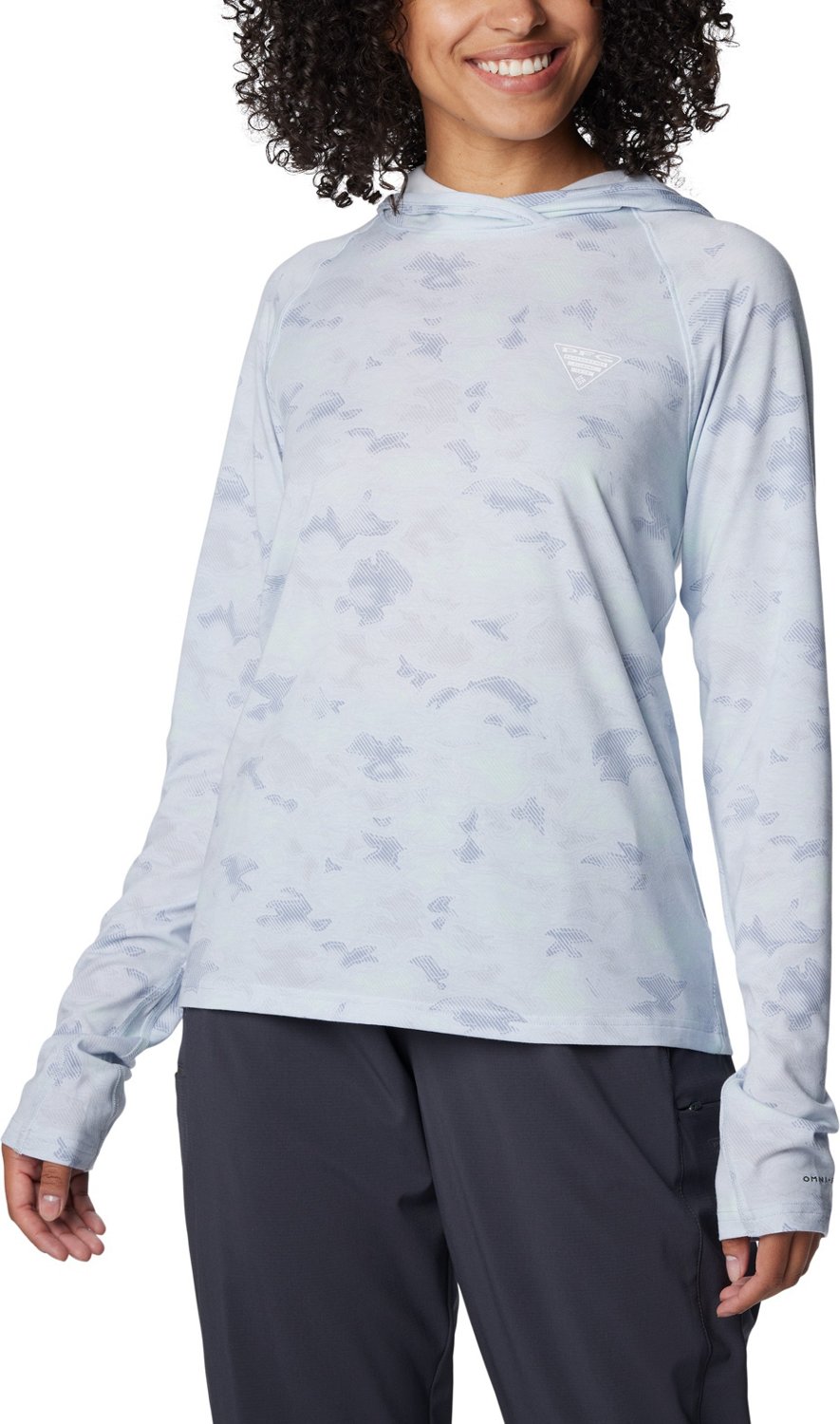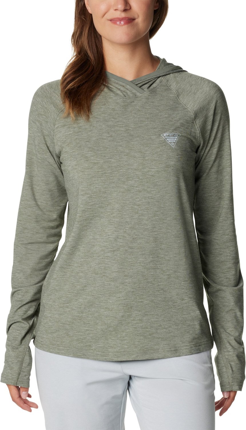 Make the Columbia Sportswear Women's PFG Uncharted Hoodie your new go-to summer staple. The moisture wicking fabric help keeps you dry for all-day comfort, while the tri-blend fabric offers comfortable wear.