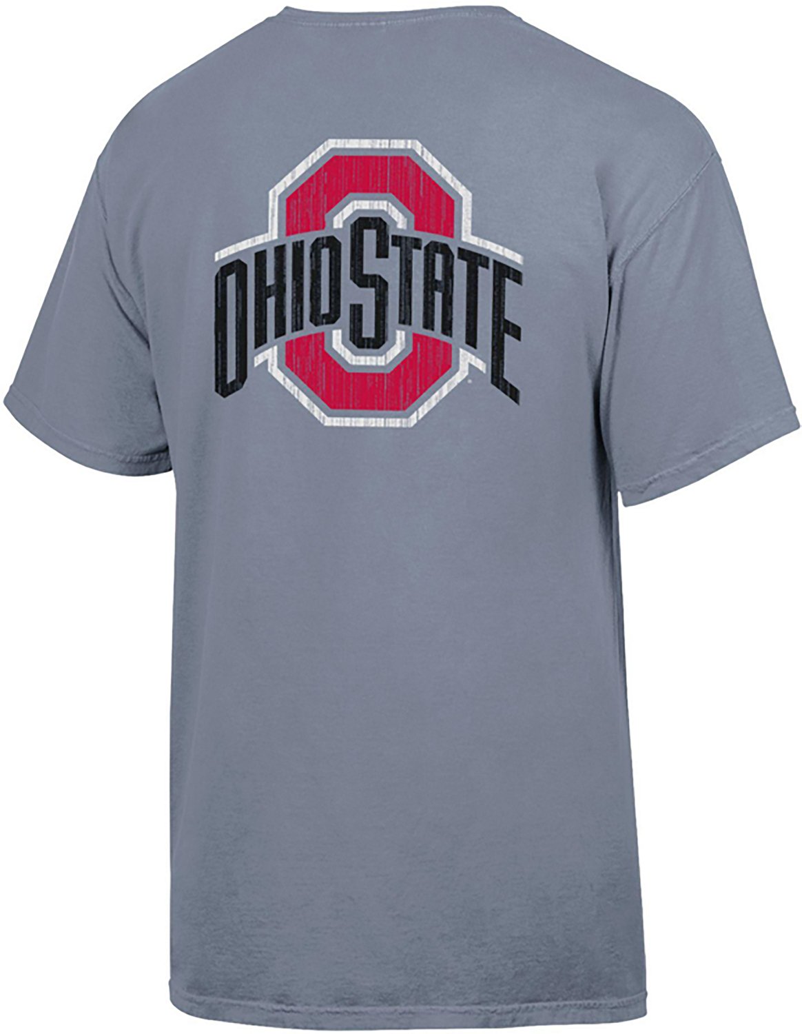 Support the team with the Comfort Wash Men's Ohio State University Leaning Mascot Graphic T-shirt. The cotton material provides a comfortable feel, while the graphic design shows off your Buckeyes pride.