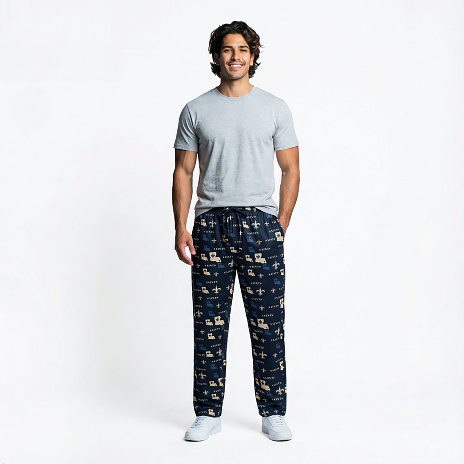 Root for your favorite team when you wear the Concepts Sport Men's New Orleans Saints Mosaic Pants. They are made of 92% polyester and 8% spandex. The jersey knit fabric is soft and breathable, and their covered elastic waist with an external drawcord offers an adjustable wear. The all over New Orleans Saints print shows off your team spirit.