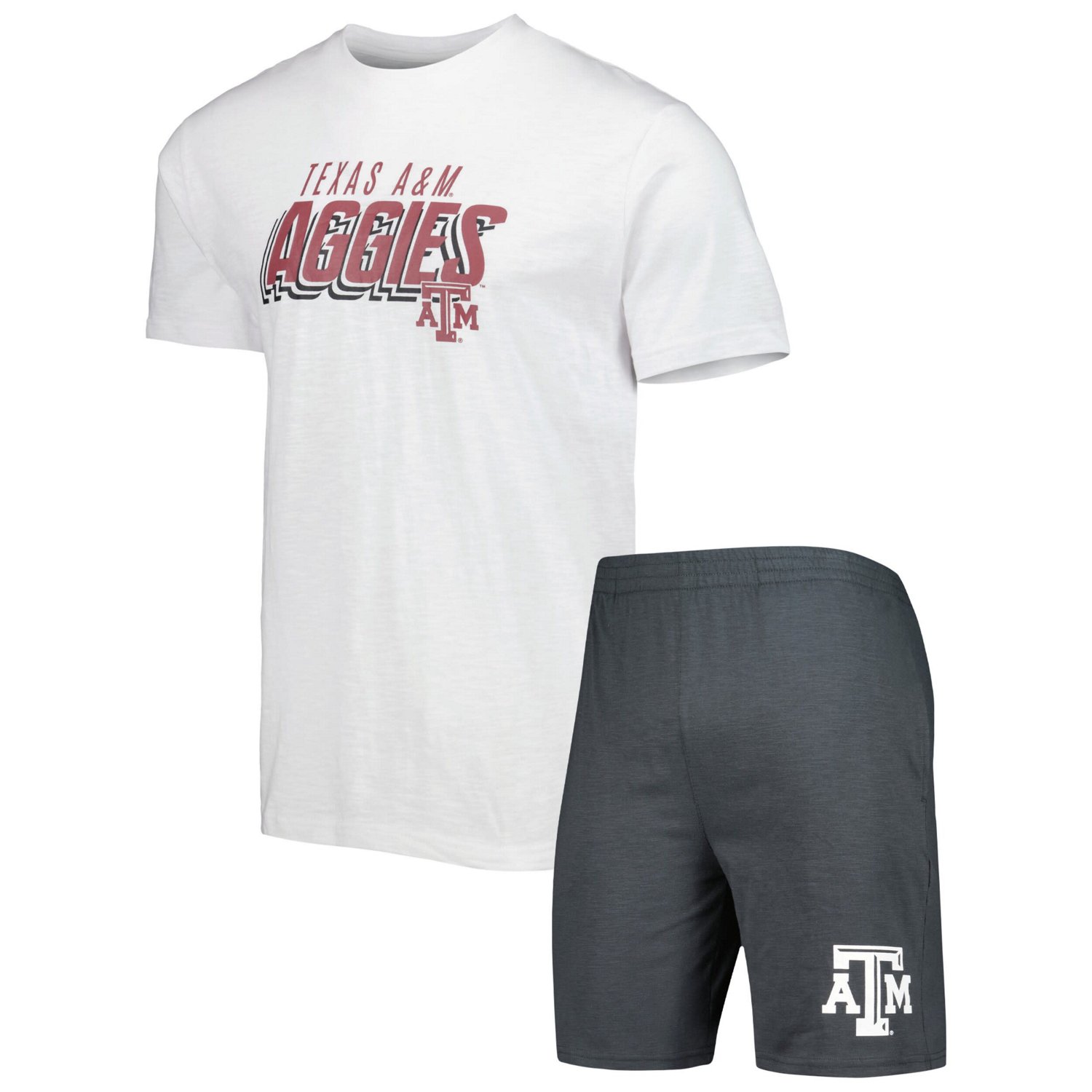 Show Texas AM Aggies spirit anywhere with this Downfield T-shirt and shorts set from Concepts Sport It features bold team graphics and an elastic waistband on the shorts for extra comfort Whether going to the gym or hitting the field rep the Texas AM Aggies with this sleek set