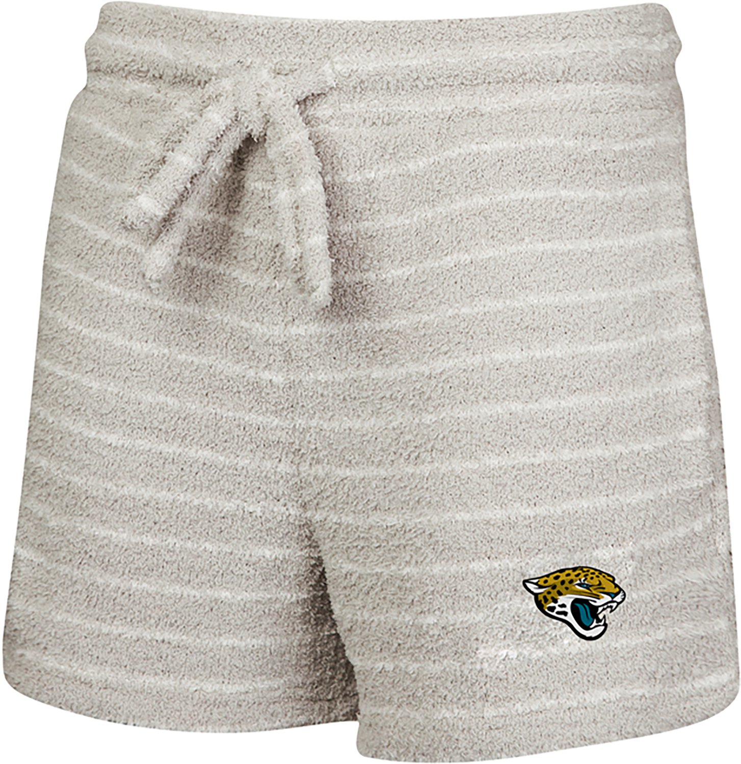 Root for your team from the comfort of home in the Concepts Sport Women's Jacksonville Jaguars Ventura Striped Chenille Shorts 4 in. They are made of 100% polyester chenille. The striped pattern provides an eye catching detail, and their embroidered Jacksonville Jaguars logo shows off your team spirit. The relaxed fit improves your comfort.