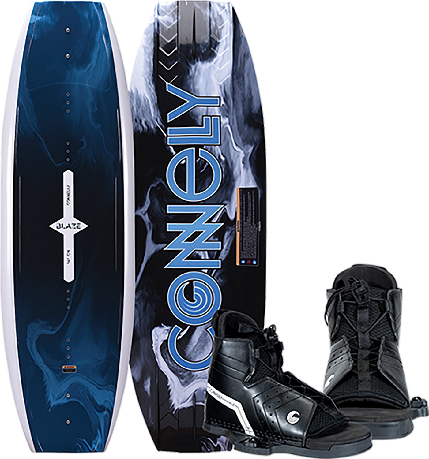 Gain confidence on the water with the Connelly Blaze Wakeboard with Hale Binding. The 4x4 molded fins provide grip, while the deep center fin and long base molded fins provide improved tracking. The 3-stage rocker provides extra lift off the wake, and the hale bindings ensure easy entry, comfort and security.