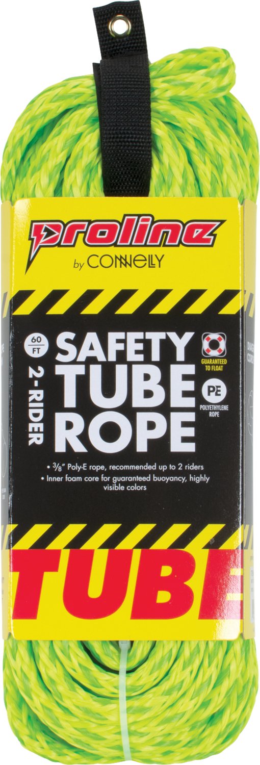 Head out on the open water with the Connelly PROLINE 60 ft 2-Person Safety Tube Rope. The WSIA-approved Poly-E mainline is built to last, while the inner foam core offers reliable flotation. The high-visibility design is easy to see on the water.