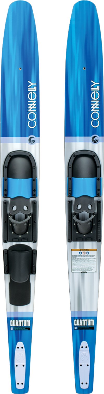 Go for a ride on the Connelly Quantum Combo Skis. The reinforced composite construction affords durability, while slide-type adjustable bindings provide a secure fit. Wide tails and shallow narrow tunnels make deep water starts easier and give riders even turns.
