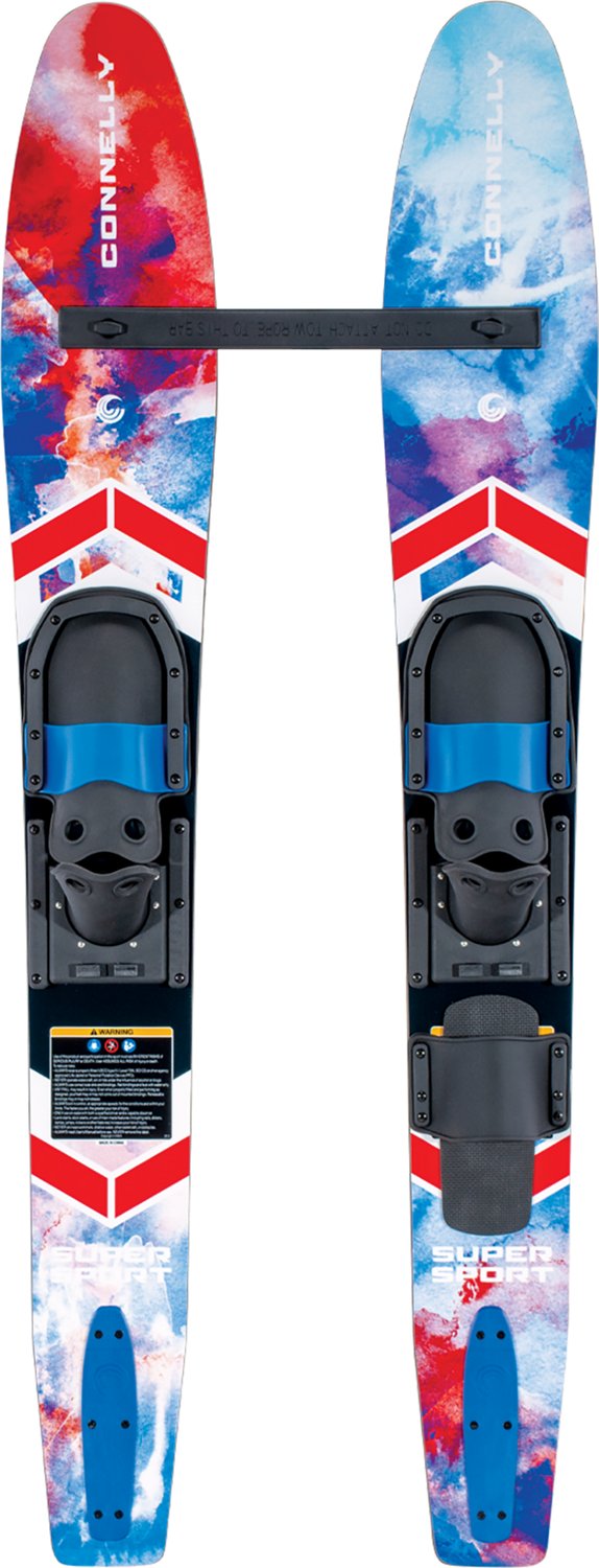 Learn the basics with the Connelly Super Sport Combo Skis. The reinforced composite construction affords durability, while wide tips and tails allow for easier deep water starts. The removable front stabilizer bar helps keep the skis in line.