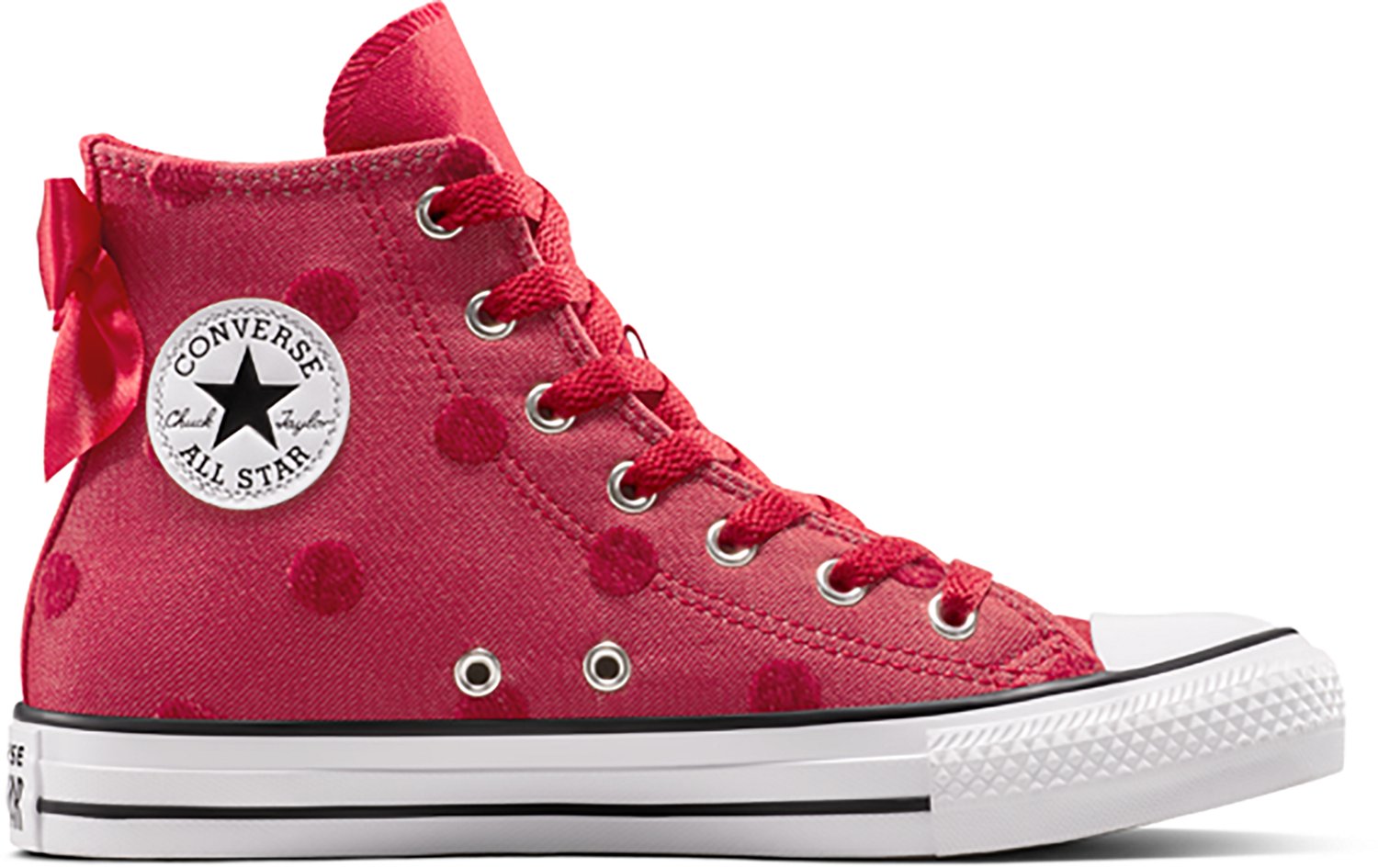 Have your little one looking their best when they wear the Converse Kids' Chuck Taylor All Star Bows Shoes. Their canvas upper creates a classic Chucks look. The soft, foam underfoot cushioning helps support comfortable play, and their lace-up closure creates a secure fit. The polka dot print and decorative bow at the heel bring a festive flair to any outfit.