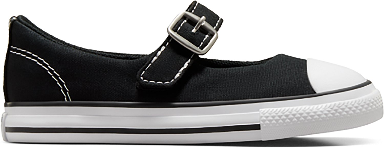 Have your little one walk in comfort with the Converse Toddlers' Chuck Taylor All Star Dainty Shoes. Their canvas upper enhances durability. The textile lining improves breathability, and their soft, foam underfoot cushioning helps support comfortable play. The ultra-low profile and a buckled strap nod to a timeless Mary Jane styling.