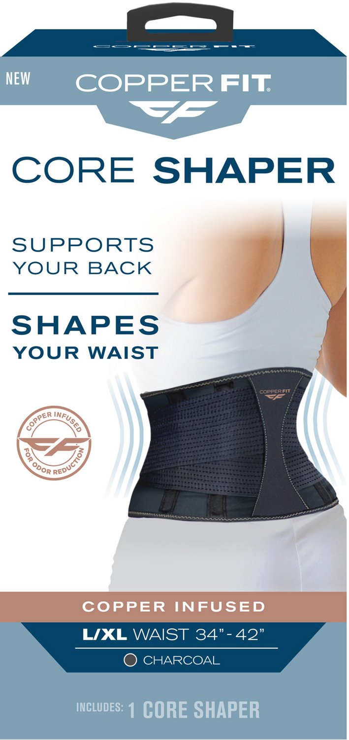 Work on your core with the Copper Fit Copper Infused Core Shaper. The shaper provides back support and helps shape your waist, while the adjustable design offers a custom fit.