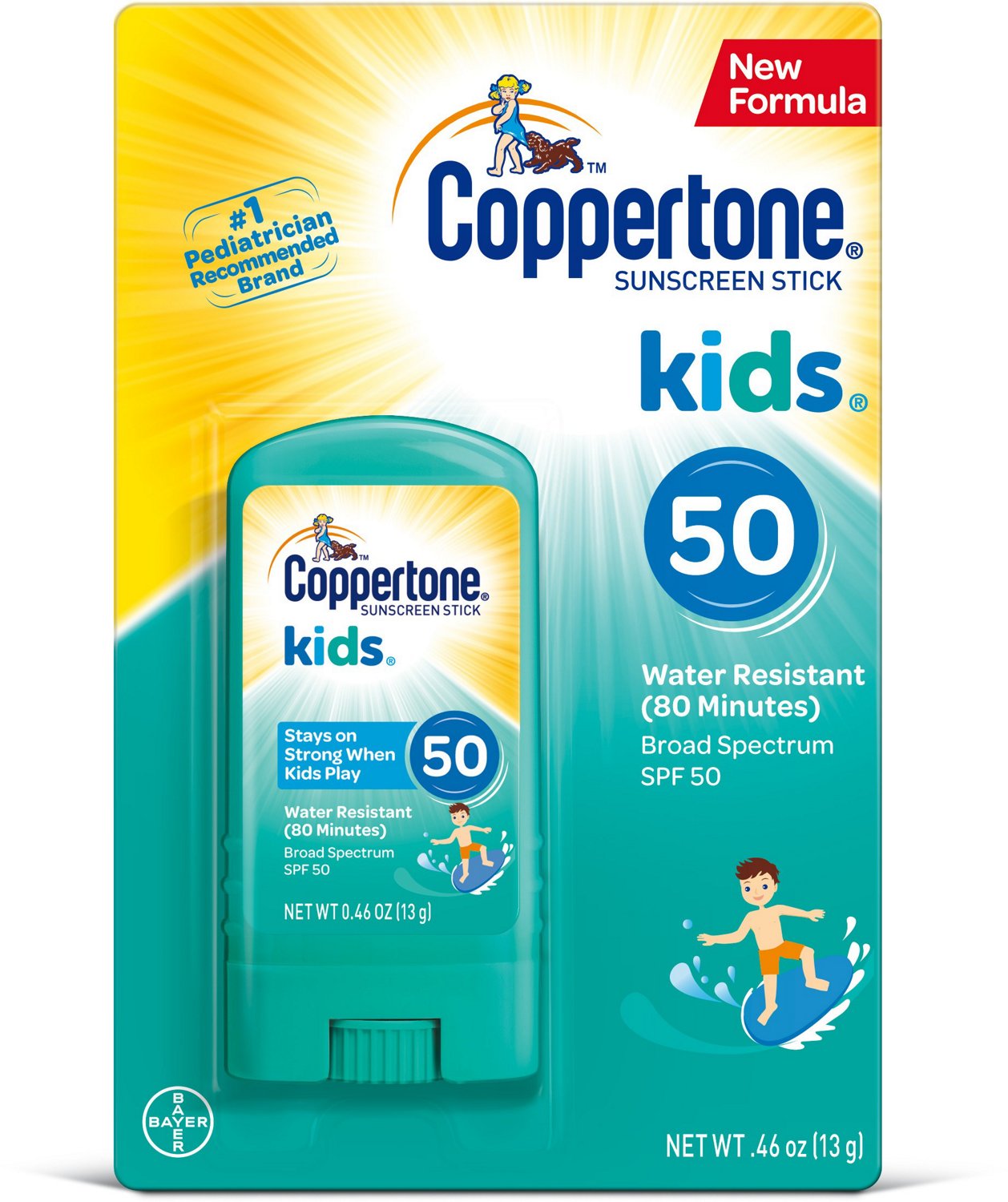 Apply the Coppertone Kids' SPF 50 Sunscreen Stick to help your kids stay safe and have fun in the sun. It offers spot protection for the ears, nose and other exposed areas of the face and is pediatrician recommended. Plus, it won't rub off in the water for up to 80 minutes.