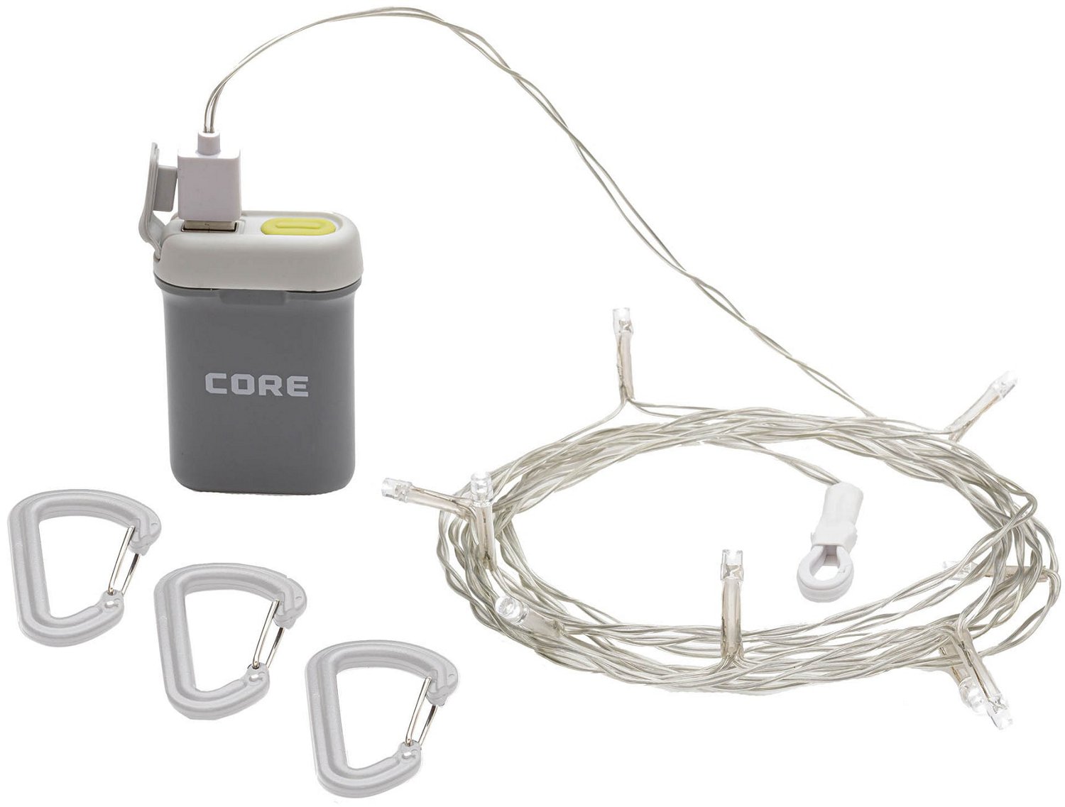 Add some flair to your campsite or backyard with the CORE Equipment String Lights. The 13 LED bulbs produce up to 100 lumens for bright illumination, and the IPX4 rating provides water resistance. The included carabiners make setup a breeze.