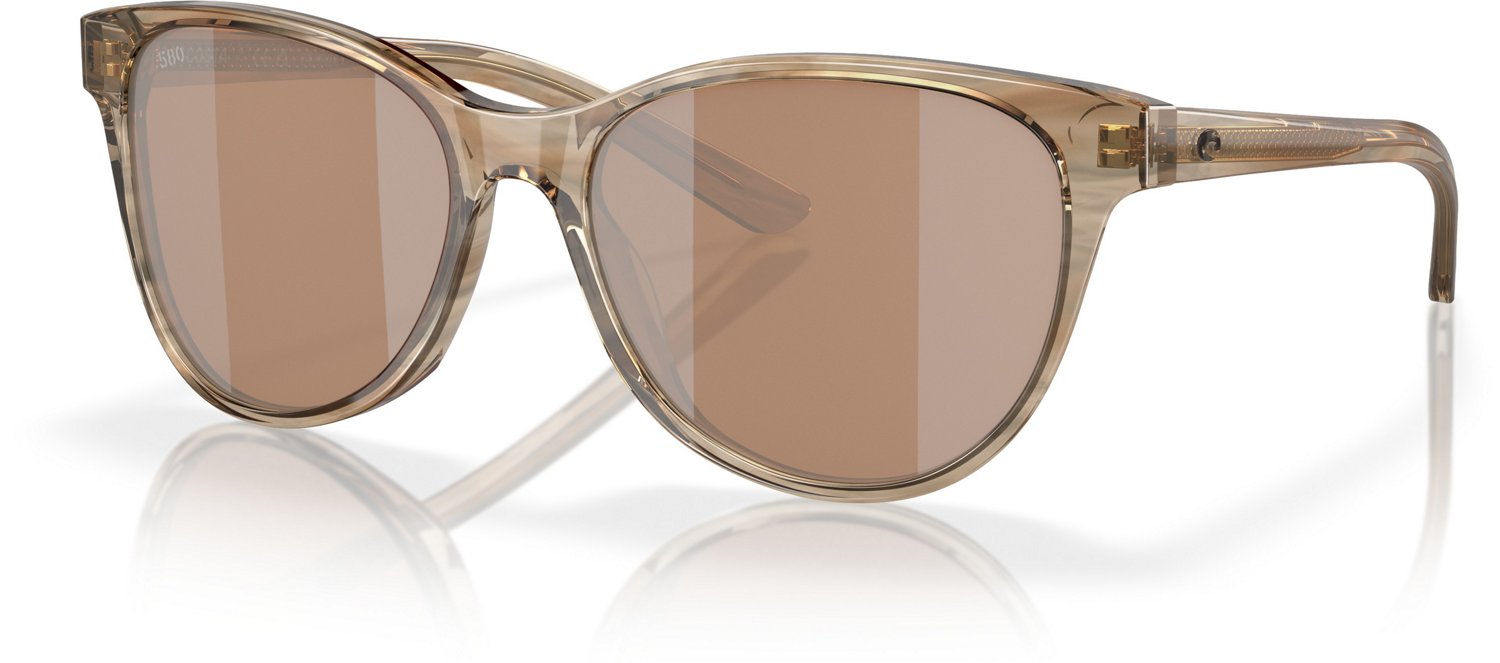 Elevate your everyday look with Costa Del Mar Catherine Polarized 580G Mirror Sunglasses. These soft cat eye glasses feature Costa Del Mar 580® glass lenses for optimal clarity and color filtering. The lenses provide 100% UV protection and are polarized to combat glare. Bio-Resin frames add durability and a lightweight feel.