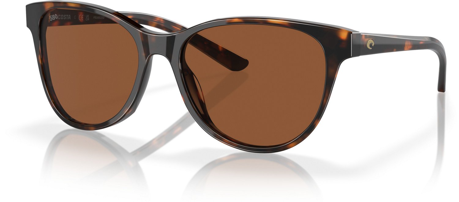 Enjoy a sunny day on the beach wearing the Costa Del Mar Catherine 580G Sunglasses. The gradient polarized glass lenses provide a classy and long-lasting feel, and they are 100% polarized for clear vision all day. The 6-base, bio-acetate frames allow you to enjoy the water and keep your eyes protected, and the cork case and costa soft case provide safe concealment when not being used.