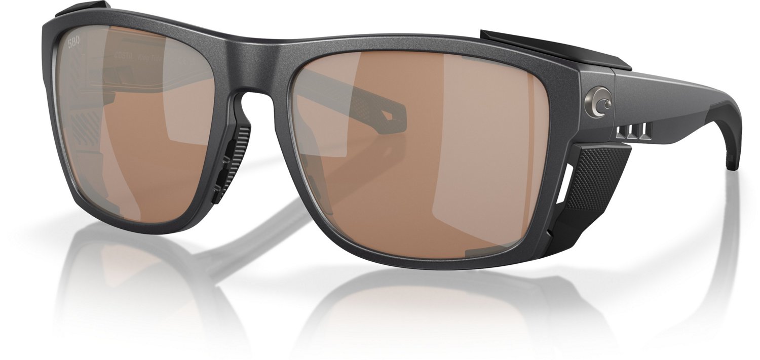 Bring along the Costa King Tide 6-Base Mirror Sunglasses as you head out onto the boat for a day of fishing. a bio-resin frame promotes strength and resilience, and the 100% polarization and UV protection help keep your eyes safe in the sunlight. An scratch-resistant coating helps prevent damage to your lenses, and the ventilation and eyewire drains help sweat and water drip away while keeping you cool.