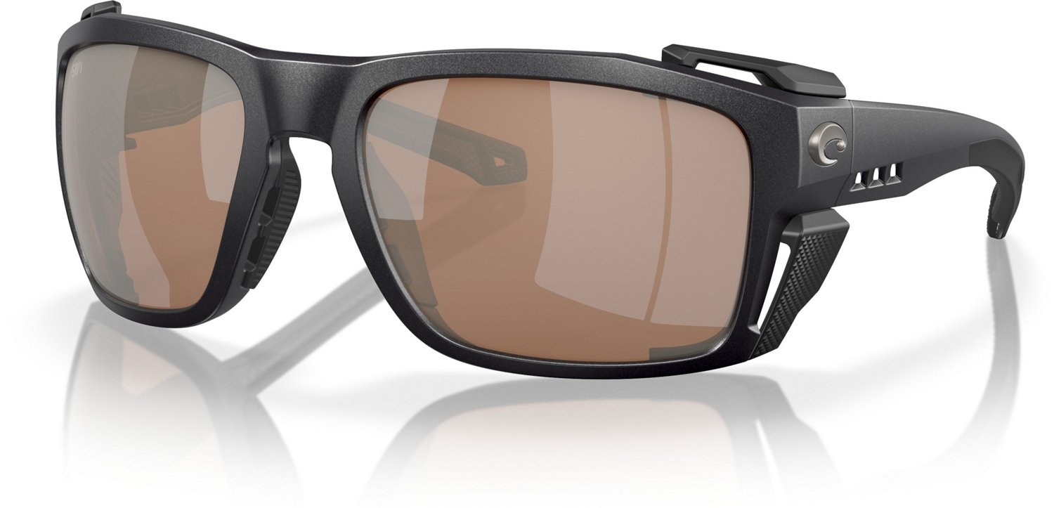 Bring along the Costa King Tide 8-Base Mirror Sunglasses as you head out onto the boat for a day of fishing. a bio-resin frame promotes strength and resilience, and the 100% polarization and UV protection help keep your eyes safe in the sunlight. An scratch-resistant coating helps prevent damage to your lenses, and the ventilation and eyewire drains help sweat and water drip away while keeping you cool.