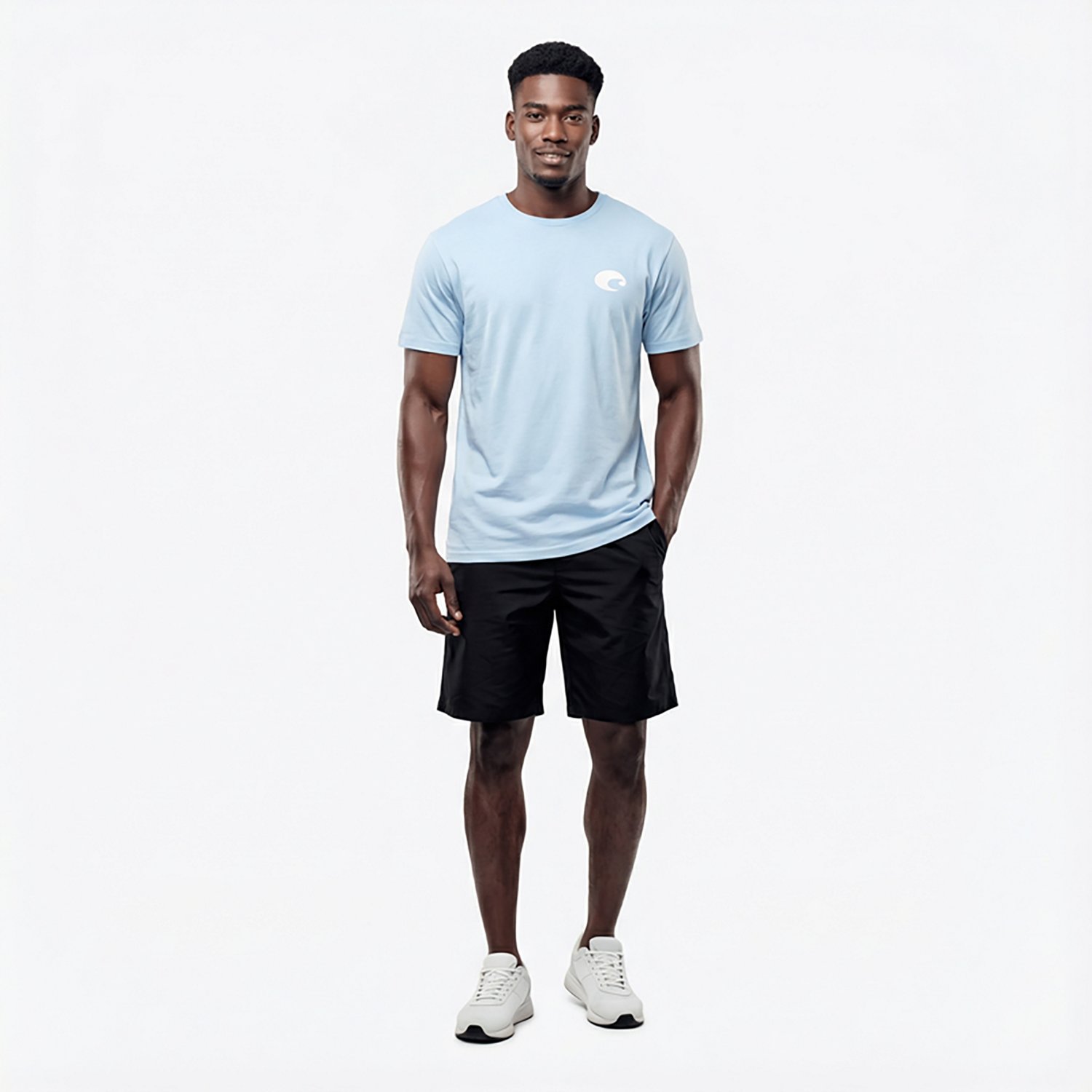 Costa Del Mar logo is screen printed on the front left chest