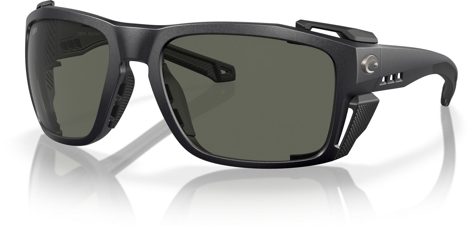 Protect your eyes in style with the Costa Del Mar King Tide 8 Polarized 580G Sunglasses. Designed for the avid fisher, the glasses feature maximum coverage and vents to reduce sweat and fogging. The lenses deliver superior light transference while providing 100% UV protection. Polarization cuts down on glare, and the C-WALL® coating prevents scratches for long-lasting clarity.