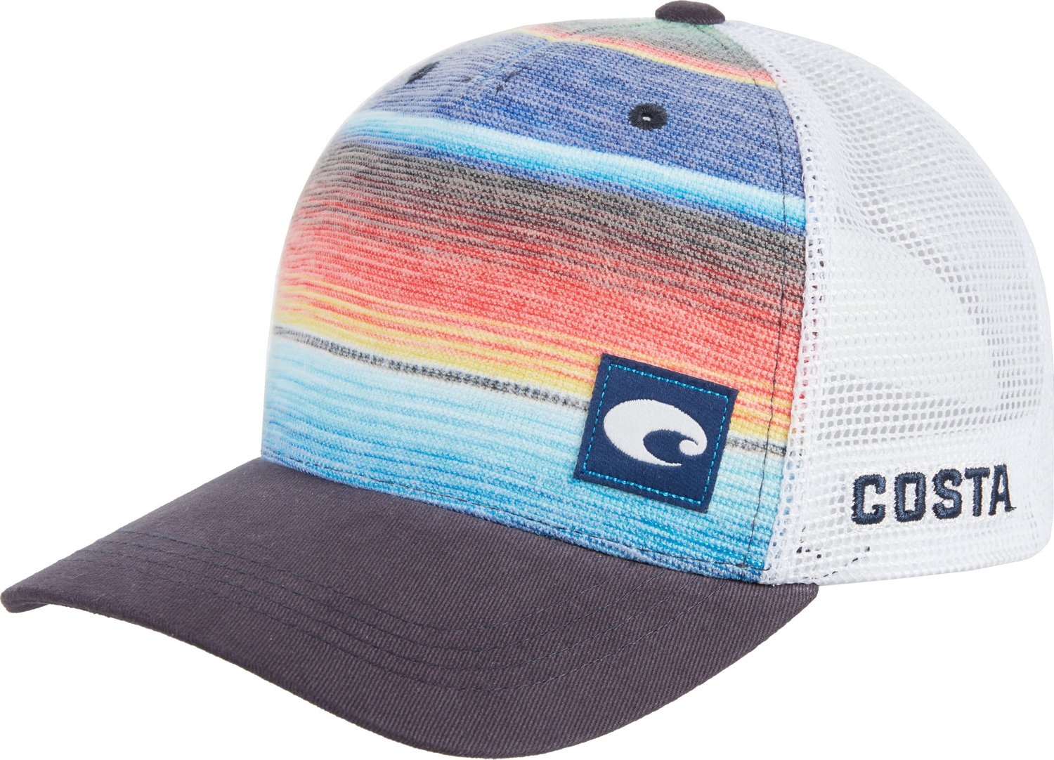Top off your outfit with a bold touch of ocean style in the Costa Men's Baja Stripe Trucker Cap. The durable 5-panel trucker construction delivers soft and cooling comfort that lasts, while the eye-catching striped design and offset woven label patch create a sleek, sporty appearance that looks great for almost any casual occasion.