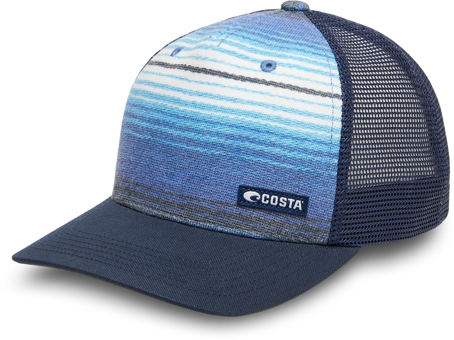 Head out on the open road with the Costa Men's Baja Trucker Hat. The polyester blend provides a comfortable feel, while the adjustable snapback closure offers a custom fit. The ventilated design ensures breathability, and the baja stripe on the front delivers a stylish look.