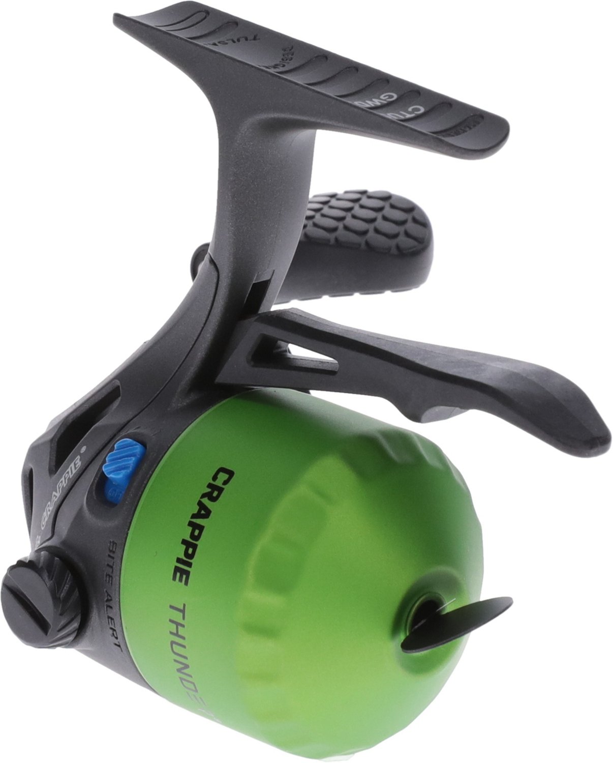 Maximize fishing performance with the Crappie Thunder Underspin Reel. Designed for long-lasting durability, this reel features a stainless steel casing with all-metal gearing. The alert system detects bites for speedy reactions while an anti-reverse switch keeps fish from pulling away.