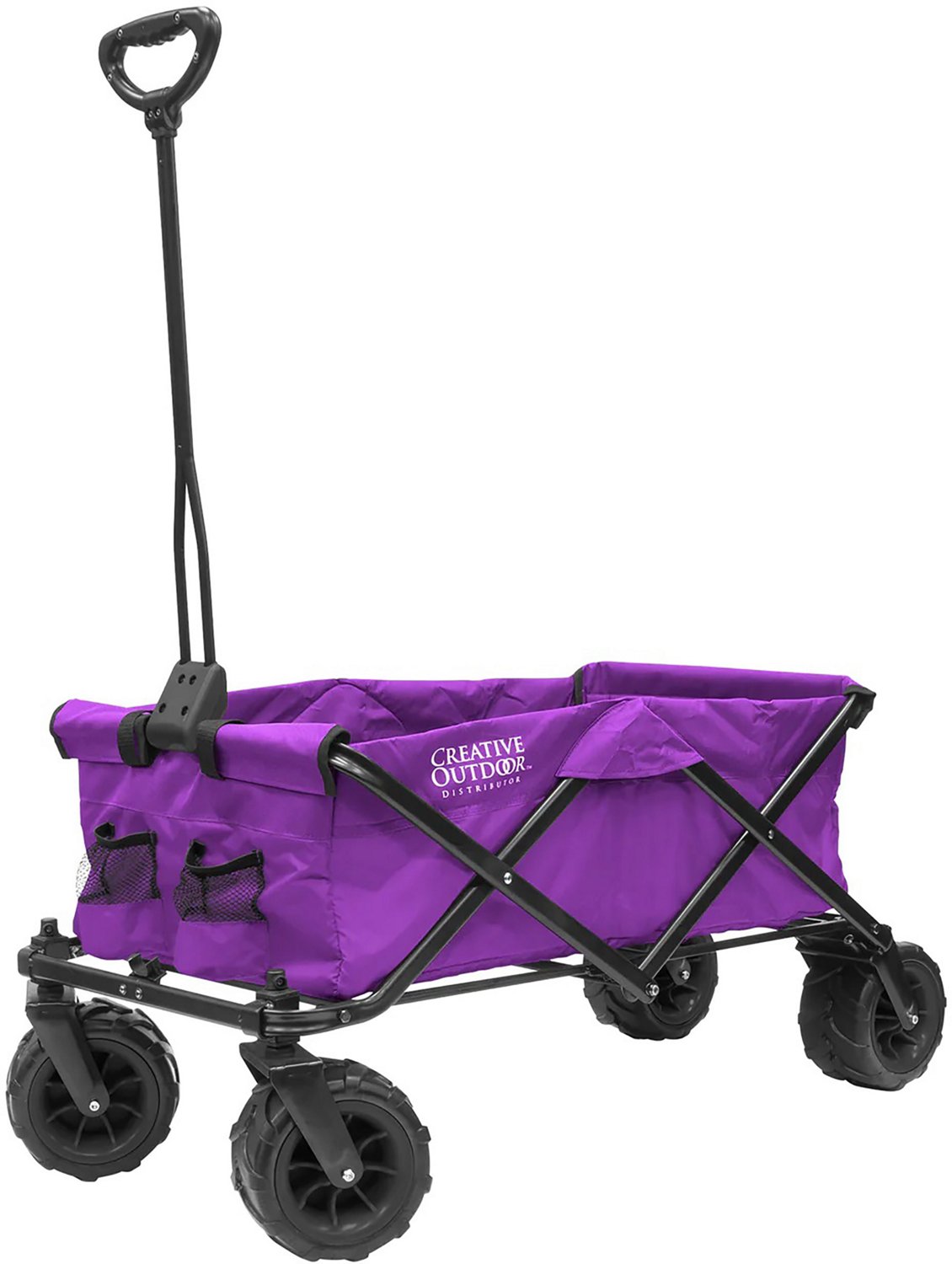 Carry your gear on your next adventure with the Creative Outdoor All-Terrain Folding Wagon. Constructed with a steel frame and CORDURA® fabric, this wagon provides strength, while the oversize rubber tread wheels promote maneuverability over a wide range of terrain. The long handle and comfort grip help you pull the wagon with ease, and the wagon easily folds down for convenient storage.