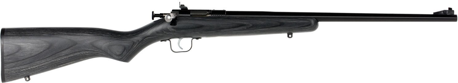 The Crickett Youth Single Shot .22 LR Bolt-Action Rifle is made with a laminate stock. It has a firing pin safety and a single-stage trigger to complement the 16.125-inch barrel. Fixed front and adjustable peep rear sights are pre-installed.