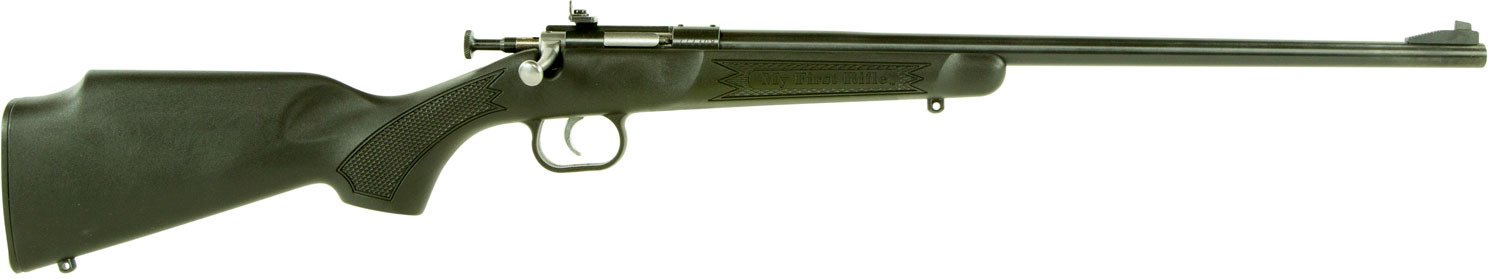 This Crickett Youth Single-Shot Synthetic .22 WMR Bolt-Action Rifle is outfitted with a synthetic stock and a single-stage trigger. The bolt-action rifle fires 1 round at a time.