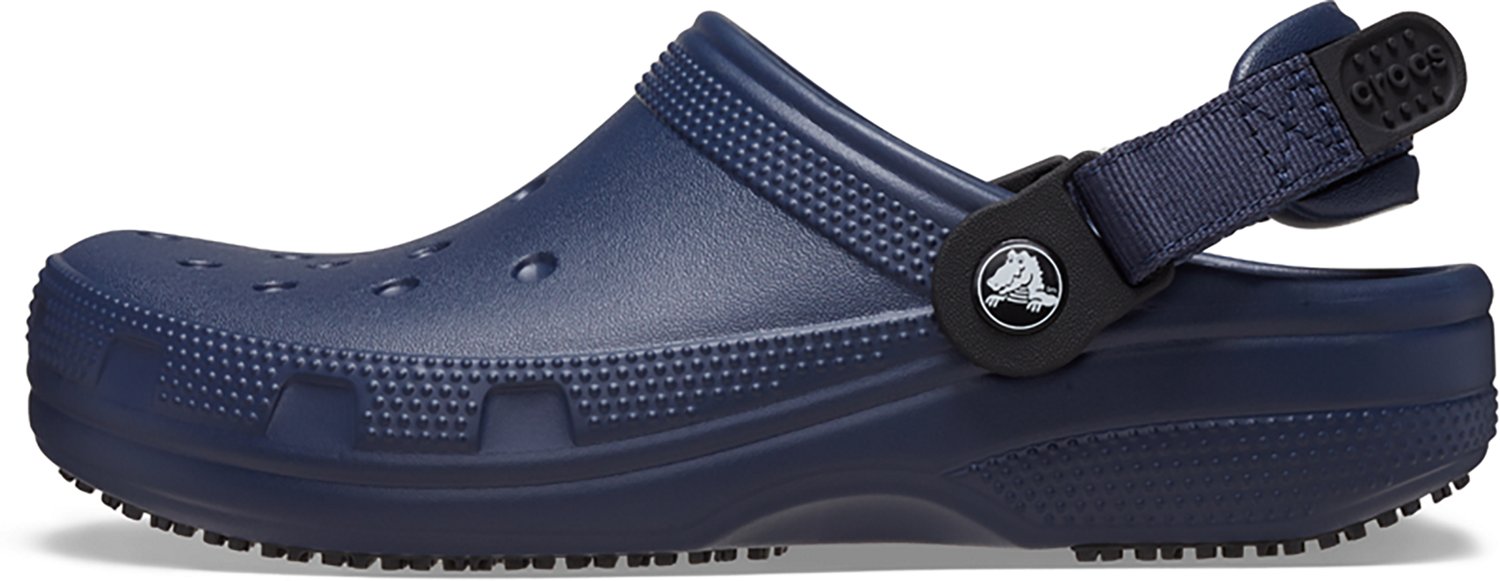 The Crocs Adults' Classic Work Clogs are lightweight, flexible and fun to wear. The water-friendly and buoyant shoes feature ventilation ports to add breathability and help shed water and debris. The clogs are easy to clean and quick to dry.