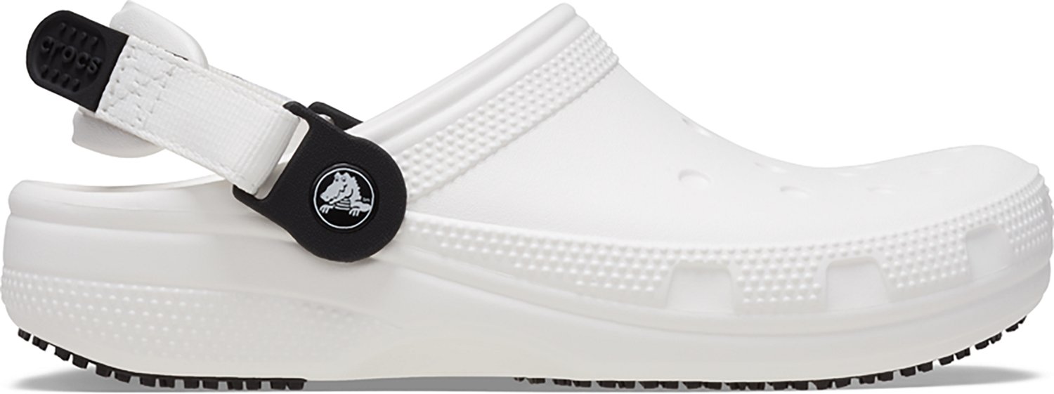 The Crocs Adults' Classic Work Clogs are lightweight, flexible and fun to wear. The water-friendly and buoyant shoes feature ventilation ports to add breathability and help shed water and debris. The clogs are easy to clean and quick to dry.