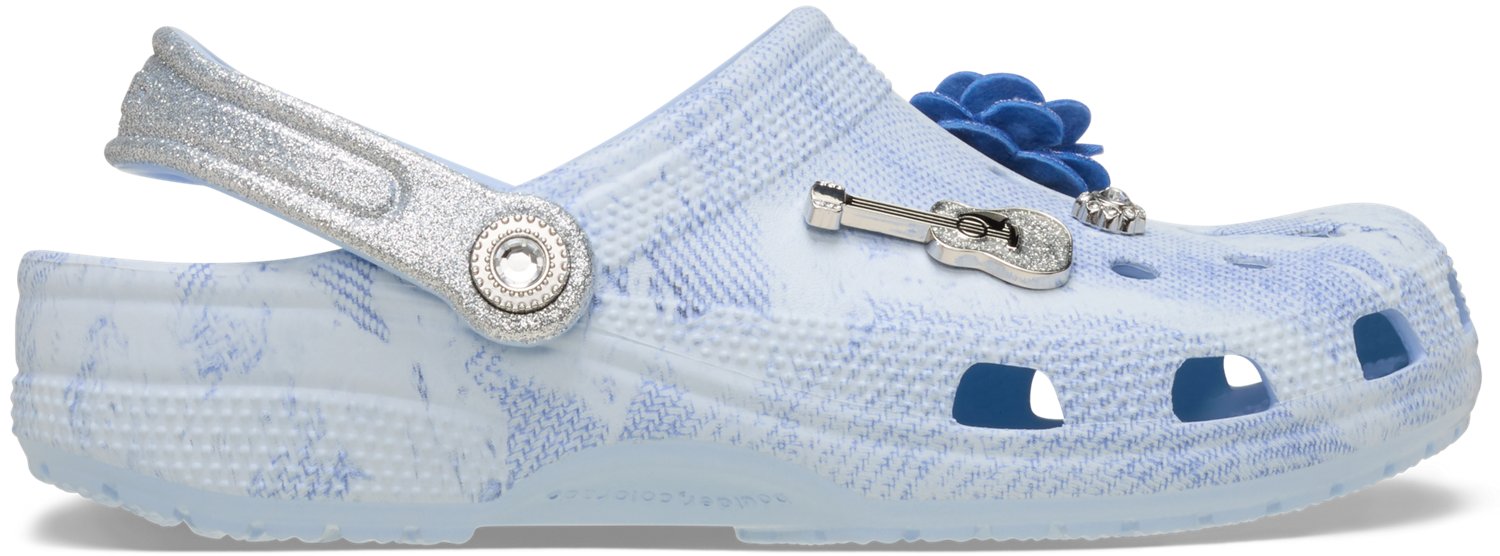 Dressing up can be fun when you wear the Crocs Adults' Rhinestone Denim Classic Clogs. The lightweight, flexible construction provides 360 degrees of comfort, while the rhinestone denim design offers a stylish look.