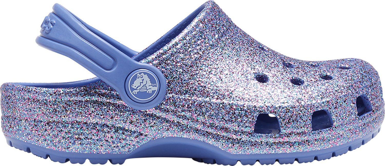 Enjoy comfort and style when you wear the Crocs Girls' Classic Glitter Clogs. The lightweight, flexible construction provides 360-degree comfort, and the Croslite™ foam outsoles offer traction and stability. The pivoting heel straps deliver a secure fit, and the clogs are compatible with Jibbitz™ charms for a custom look.
