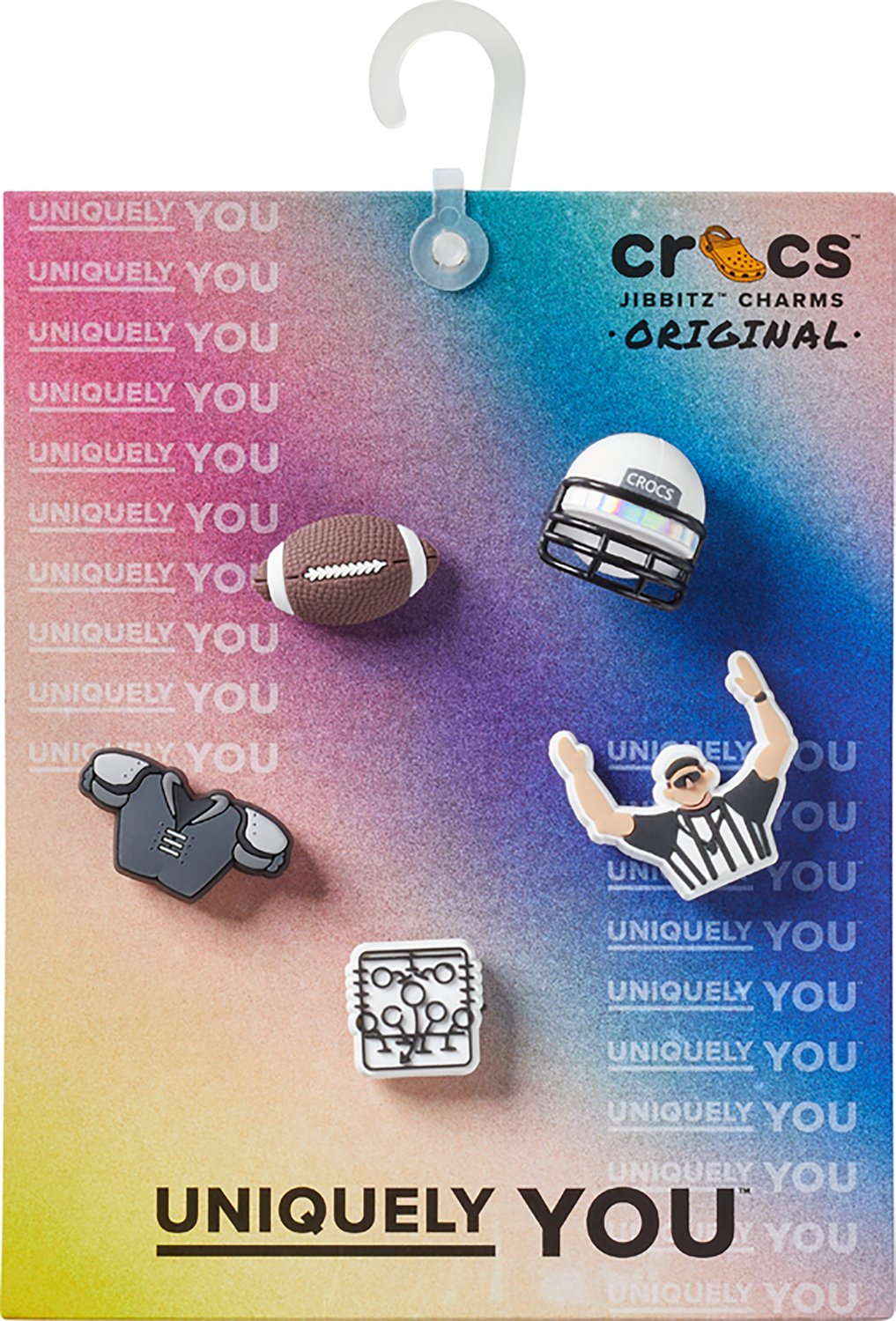 Make a statement and rock your own style with the Crocs Jibbitz™ Football Team 5 Pack. The colorful charms add a bit of your unique personality to your favorite pair, and the variety of pieces means endless customizability.