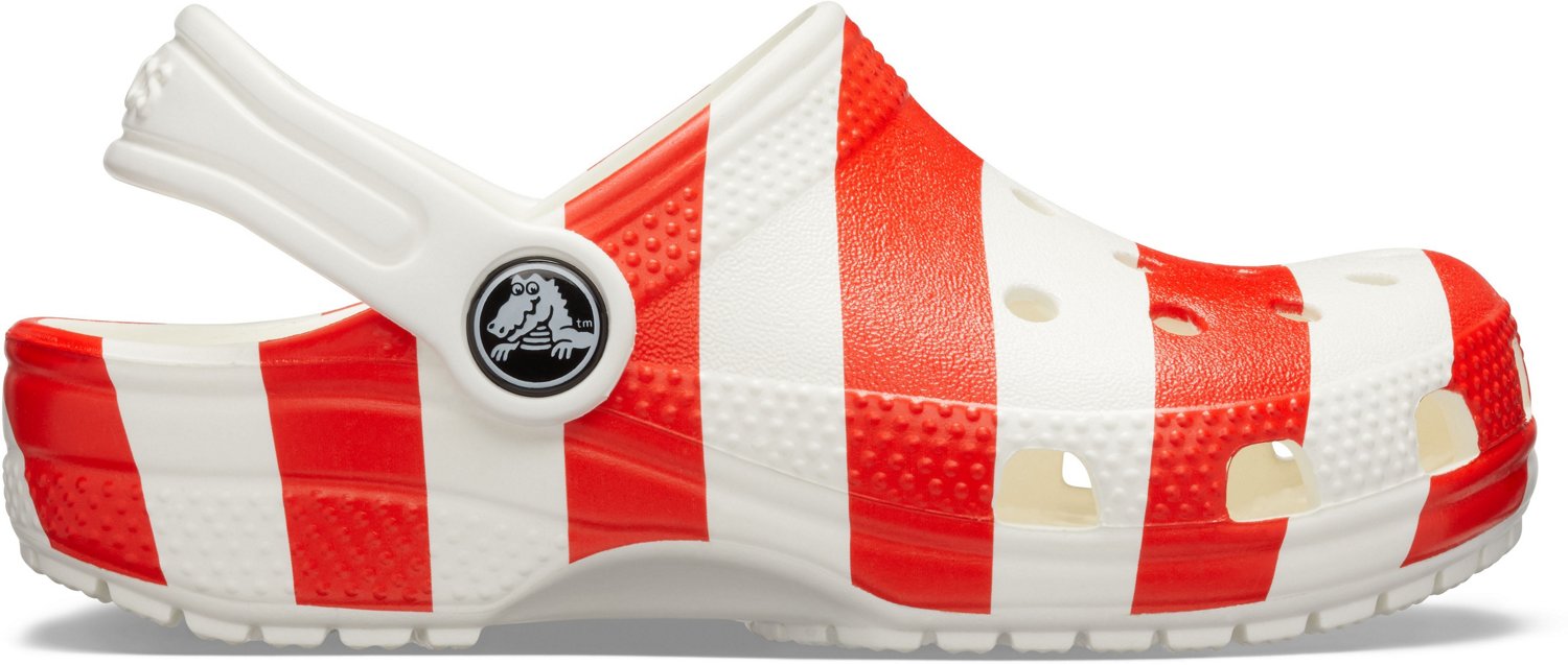 Stay comfortable as you show off your patriotic pride in the Crocs Kids' Classic American Flag Clogs. They're made with the Iconic Crocs Comfort™ technology to support and cushion the feet all day long. The ventilation ports offer breathable comfort, and the heel straps make the shoes easy to take on and off. The stars and stripes pattern displays your love for the USA.