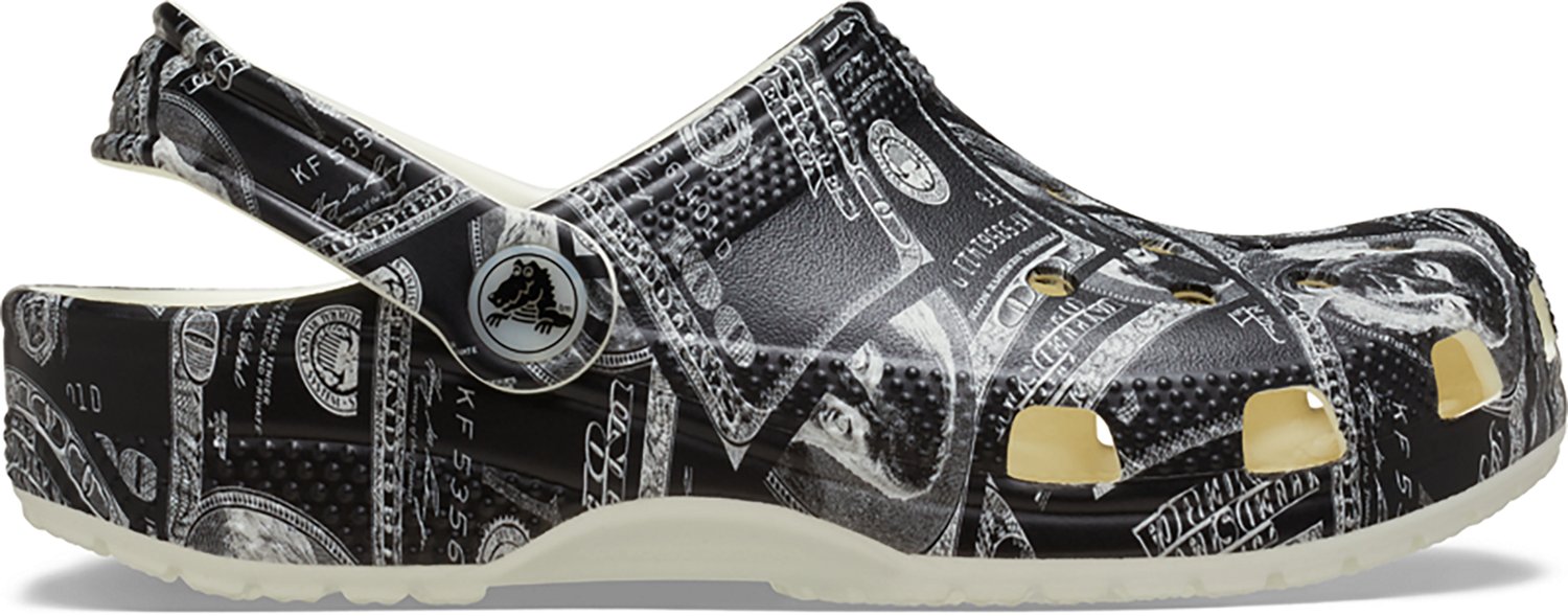 Light up their look with the Crocs Kids' Classic Glow Money Clog! These fun clogs feature vibrant, glow-in-the-dark money graphics that add a playful twist to any outfit. Made with lightweight Croslite™ foam, they offer signature Crocs comfort and support for all their adventures. Easy to clean and quick to dry, these clogs are a bright idea for everyday wear.
